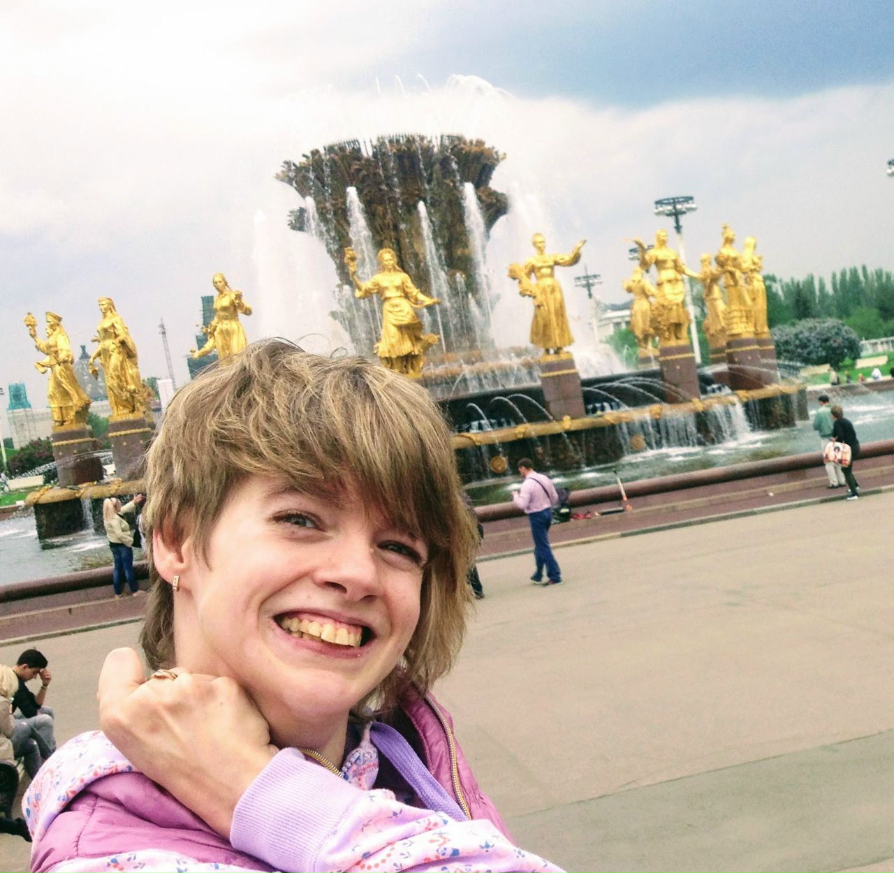 Так вот, позавчера был тот самый замечательный день, когда мы пошли на ««Пиратов Карибского моря: Мертвецы не рассказывают сказки»! Да!!! Пошли мы в к\р «Космос», но до этого часа три шлялись по ВДНХ. Да, на ВДНХ я приехала на такси сама. Очень волновалась: я давно не ездила на такси: «смогу - не смогу» были сомнения. А, нет. Все получилось вполне нормально: искала таксиста в «трех соснах». Бегаю, ищу его, а мне из сумки «Викинги»: «Возьми трубку...! Ты что, не слышишь!.. Возьми трубку!!! (Пиииииииииии)» А я им: «Да слышу я, слышу! Уже бегу!» - а они продолжают орать. Господи, это ж пока найдешь этого таксиста: взял, встал около первого подъезда со стороны улицы, а я живу в четвертом подъезде и выхожу со стороны двора. Бежала к нему, бежала. Но, все меня понял, что мне на ВДНХ, села в машину, и мы поехали. Даже дверь в машину сама открыла и закрыла за собой. Я прям, мустанг какой-то крутой после этого... Так что, мастерство хоть и надо каждый день практиковать, но если оно есть, то его не пропьешь, точно! Да! И не учите меня, что таксисту в комментариях надо писать номер подъезда и куда подъехать. Они их не читают вообще - проверяла. Получалось даже так: тем, кому пишешь в комментах, вообще все ни так сделают, а кому не пишешь, сделают все более-менее как над. На ВДНХ я была раза два. В первый раз была, когда мне было лет пять, меня туда возили зимой родители на сеансы к экстрасенсу Меня же лечили же. Я его «чертиком)) звала (экстрасенса). У него были черные кудрявые волосы, и они всегда у него были в разные стороны. А может и не поэтому звала, не знаю. Экстрасенс же. И я помню, возили меня туда зимой, родители тащили меня на санках до павильона, где он принимал. Холод был страшный. Меня в шубе, да еще в бабушкин серый пуховый платок закутали, чтобы только непременно один глаз выглядывал из него. И я помню тащат меня на санках родители; холодно, снежно; и я вижу тот фонтан первый, который золотой. И я помню это удивление: на белом снегу стоят золотые тетеньки (пятнадцать республик же), и на них еще снег лежит, и они еще светятся. Вау!!! Глаз нельзя было оторвать!!! Это было самое классное в этих поездка. И потом я сама ждала, когда мы поедем к этом «чертику, чтобы увидеть вот это золото на белом снегу... А потом, второй раз я там была с классом в десятом классе. Мы там что-то космическое хотели посмотреть, а там все не работало, и мы пошли по торговым лавкам «сад-огород». Ходили-ходили. Там еще на меня упал одноклассник, и не извинился, что упал. Мне что там больно было, я чуть не плакала, потом полдороги хромала. И, короче, тогда мне там не понравилось. А позавчера я, прям, не узнала это ВДНХ, хоть и большинство территорий в «лесах», но все что сделано сейчас, это намного лучше, чем было тогда. Побольше бы кафешек и лавочек на пути. И мы - дорвались! Мы от главного входа дошли до прудов. Их, кстати, там выкачивают. Там еще «Пекарня Филиппова» была, может кто помнит. Хлеба уже нет, а вывеска до сих пор есть. Сирень там, как сумасшедшая цветет. А пахнет - до головокружения. Она там такая разная, такая огромная. Красотища! Я очень завидую тем людям, которые неподалеку живут от таких мест, и часто там гуляют, и у них там есть какие-то свои места, находки, где есть что-то, что дорого именно им. Я очень хочу, чтобы у меня тоже были такие места: тихие, укромные, и чтобы там было хорошо-хорошо. И я не знаю какие это места, но они 